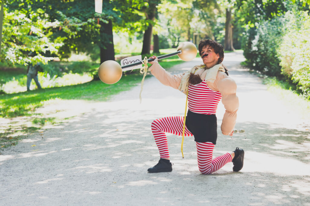 Mit einem Massband darf jeder gerne seine Muskeln messen. Er flirtet gerne charmant mit Handkuss und betört mit seinem Brusthaar. Er ist ein wahrer Partyking und liebt das Gymnastikband.
