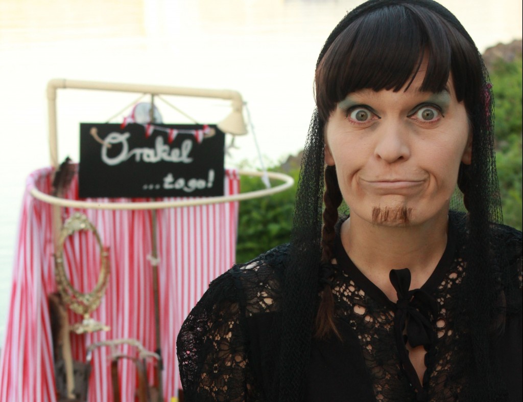 Mlle Prrrr’s „Orakel to go!“ – ein mobiler flexibler Act der mystisch-clownesken Art.