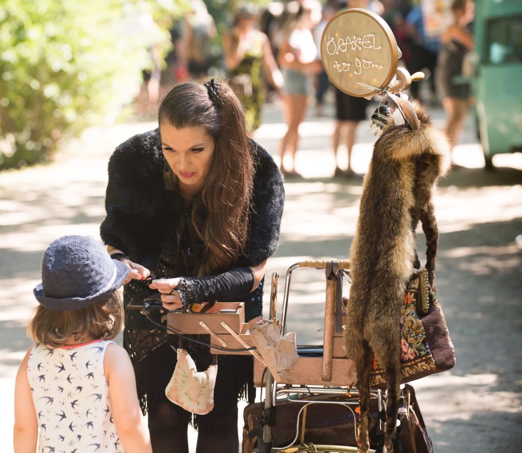 with a bag full of crazy paraphernalia and her sewing box, the oracle-master moves trhough the crowd.You have a question? You are guaranteed to get a surprising answer! This mysterious lady has masterd the long-forgotten techniques of the oracle, such as the pig throwing interpretation, the gummy oracle, drawing machtes, gazing into the crystalball of love… etc.